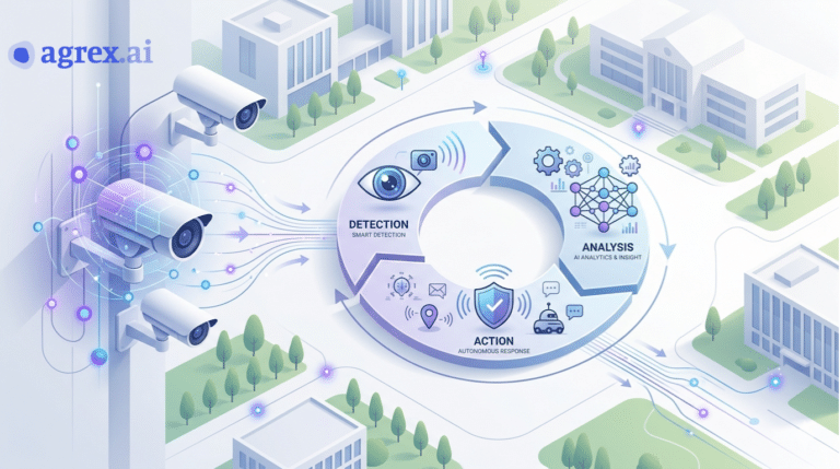 Traditional AI surveillance software monitors and records. Agrex.ai does something different: it detects, decides, and acts — automatically, in real time — before a single second of footage needs to be reviewed by a human. The result is a campus where every incident is responded to immediately, every compliance event is logged automatically, and your security team focuses on resolution — not monitoring.